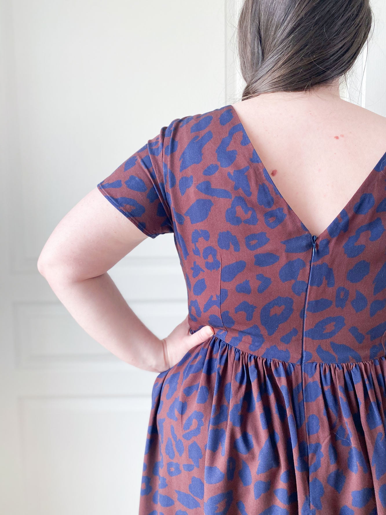 • découpes princesse à la poitrine et pinces de taille dans le dos