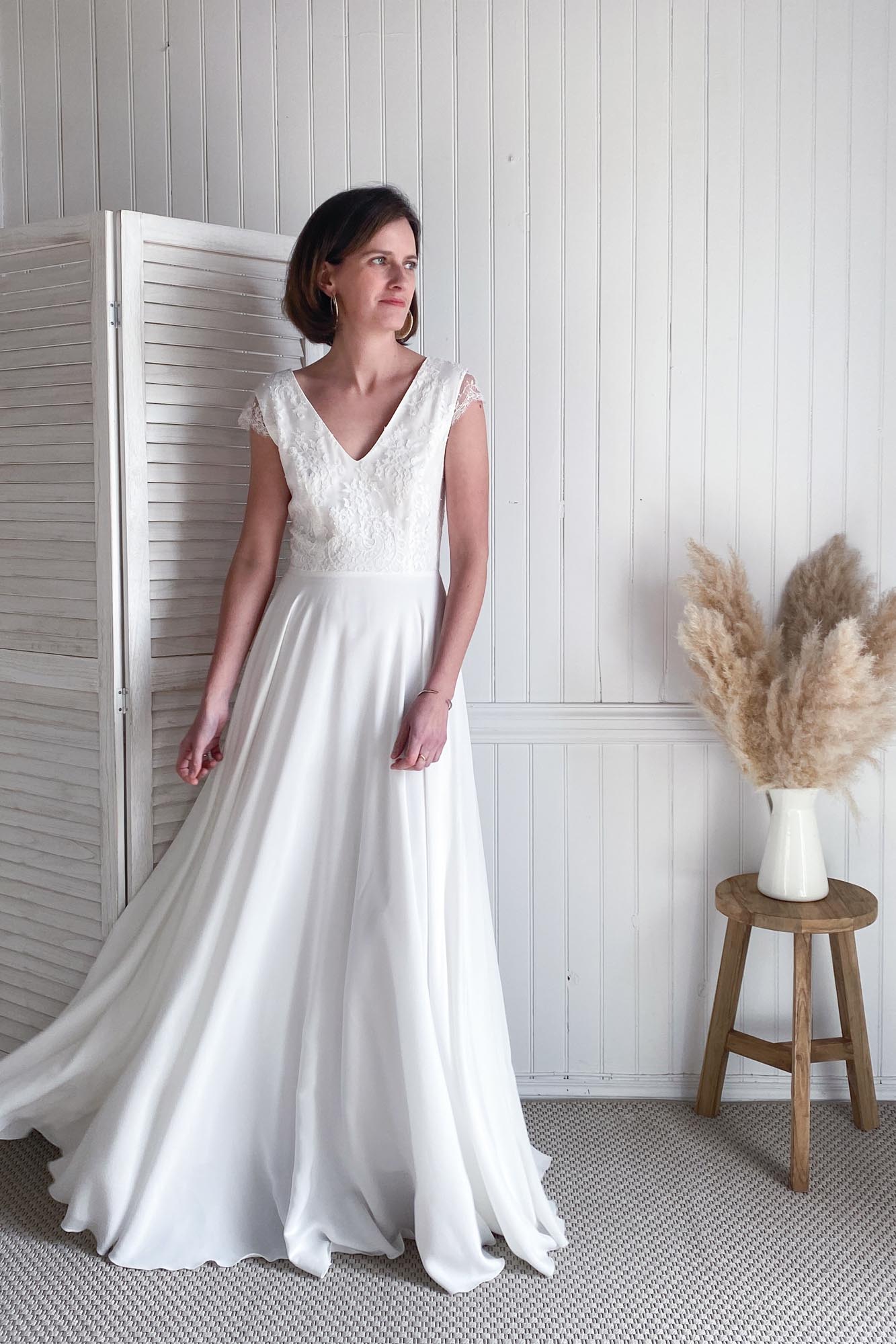 The Full Circle Skirt sewing pattern was originally designed for brides. It is the perfect skirt to create flowy dresses with light fabrics like chiffon or tulle, or majestic ones in medium-weight fabrics fabrics.