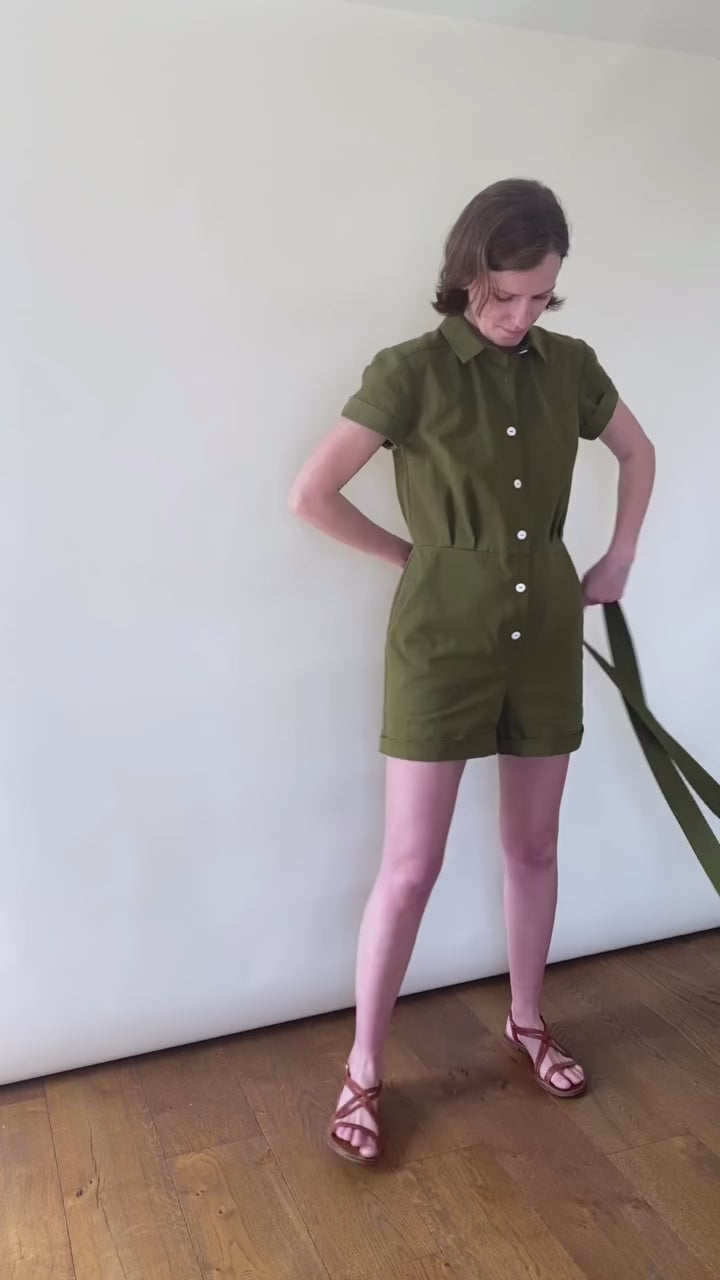 Combishort en Gabardine Kaki