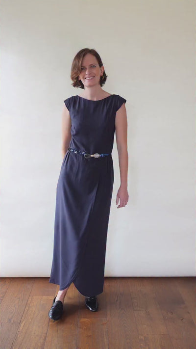 Cousez une robe longue pour les fêtes avec un joli ourlet portefeuille tulipe et une encolure bateau élégante. Un modèle intemporel, à personnaliser selon votre silhouette et vos envies.